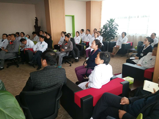國文醫(yī)院黨員們屏息靜氣聽習(xí)主席作報告,一直到下班的音樂響起,都無一人離席。因工作原因,直到黨委副書記讓大家回去繼續(xù)觀看,大家才一一退場。