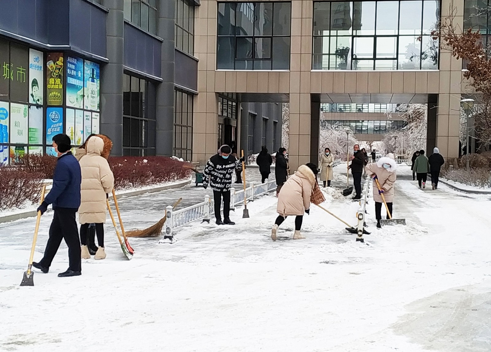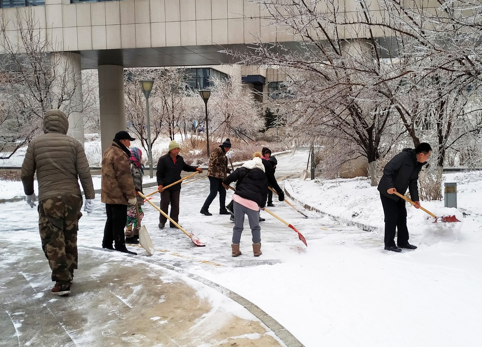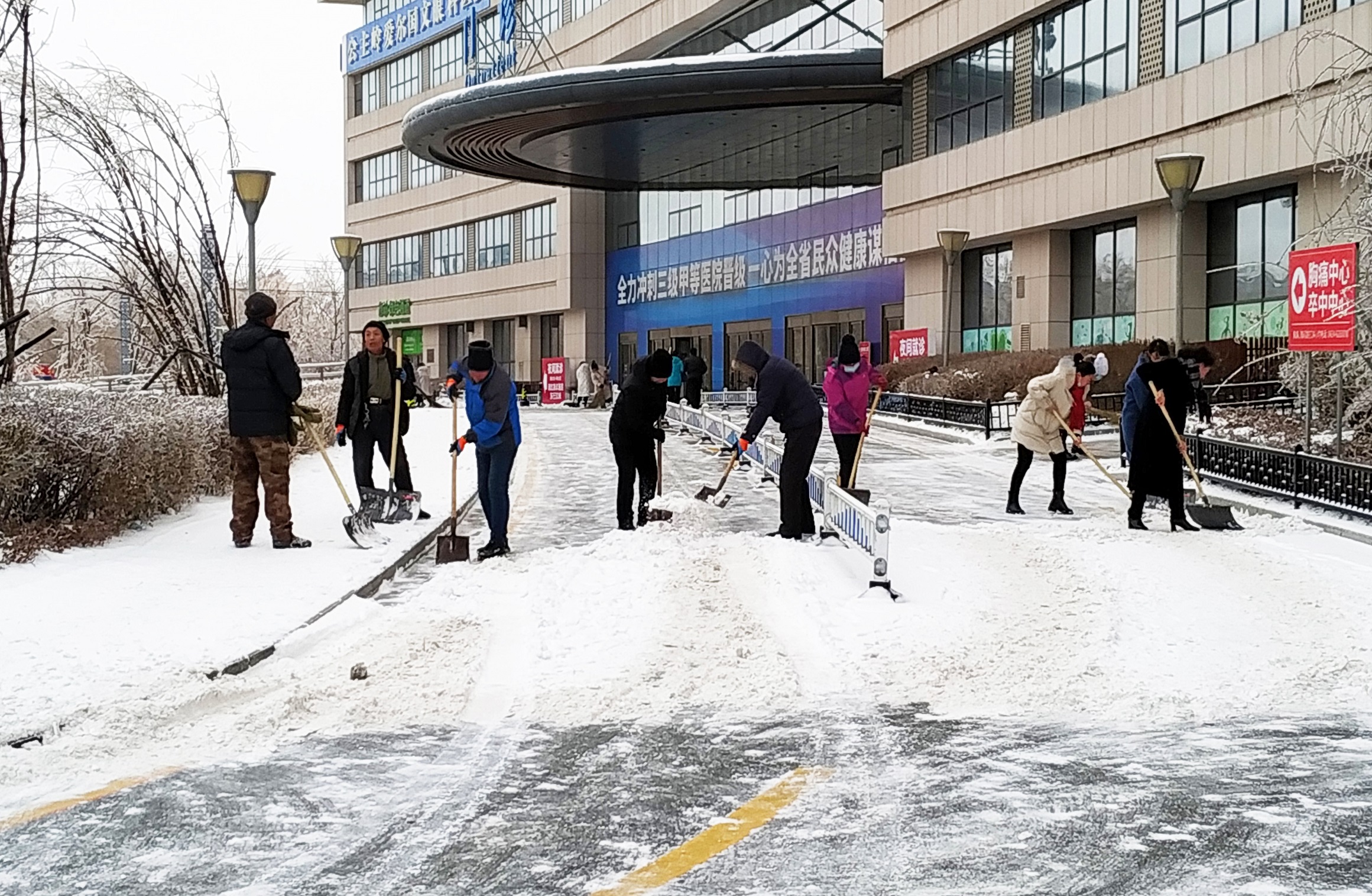為了及時(shí)解決積雪給前來(lái)就診的患者和探視家屬及行駛車輛帶來(lái)的困擾,20日清晨6時(shí)30分許,吉林國(guó)文醫(yī)院?jiǎn)T工在院領(lǐng)導(dǎo)的帶領(lǐng)下,以科室為單位組成掃雪隊(duì),不畏嚴(yán)寒、無(wú)懼辛勞,積極投身到掃雪“第一線”,深刻踐行著醫(yī)院“大愛(ài)若水 惠澤無(wú)聲”的服務(wù)理念。