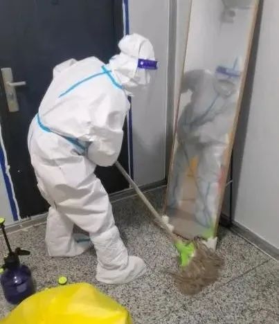為給隔離人員創(chuàng)造一個安心舒適的環(huán)境。24小時連續(xù)的工作,她沒有絲毫松懈,有條不紊地帶領(lǐng)工作人員全面清理公共區(qū)域、清潔區(qū)、緩沖區(qū)、污染區(qū)的垃圾和環(huán)境。