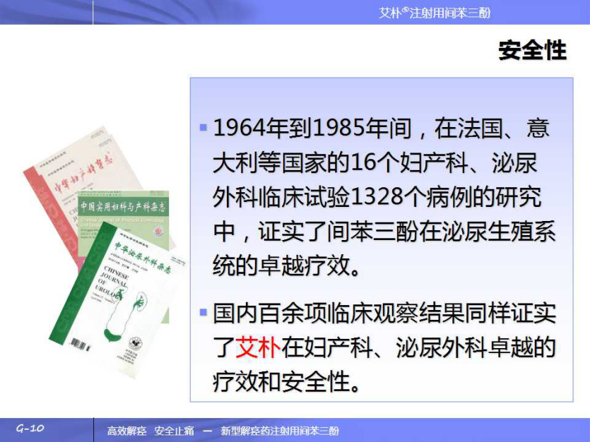1964年到1985年間,在法國、意大利等國家的16個婦產(chǎn)科、泌尿外科臨床試驗1328個病例的研究中,證實了間苯三酚在泌尿生殖系統(tǒng)的卓越療效。 國內(nèi)百余項臨床觀察結(jié)果同樣證實了艾樸在婦產(chǎn)科、泌尿外科卓越的療效和安全性。