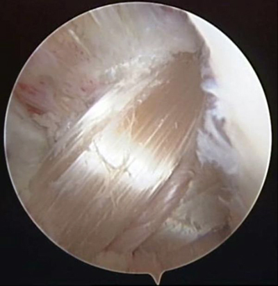 3、邊緣不規(guī)則、成角扭曲呈波浪狀(MRI連續(xù)性未見中斷、鏡下用探子探察全斷)