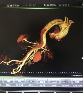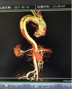 5月2號劉大伯照常早起干活,突然胸部劇烈疼痛,難以忍受,全身大汗,同時伴有右上肢發(fā)涼,他心想這次心絞痛比之前嚴(yán)重的多啊,趕緊叫上孩子到吉林國文醫(yī)院心血管內(nèi)科住院,患者長期高血壓病史,血壓一直控制不理想,大夫給他做了檢查,測左上肢血壓:82/45mmHg,右上肢血壓測不出,心率52次/分,右側(cè)肱動脈、尺動脈、橈動脈搏動消失,左側(cè)股動脈搏動較右側(cè)弱?!霸懔?,雙側(cè)血壓差別這么大,是不是主動脈夾層了?”,接診大夫趕緊找來李主任,李主任反復(fù)詢問患者病情,表情突然凝重起來,患者胸痛這么明顯,血壓低的厲害,主動脈夾層的可能性很大。二話不說,李主任立即聯(lián)系影像科的醫(yī)生準(zhǔn)備做主動脈CTA,移動患者做檢查的過程大夫們非常小心,嚴(yán)密監(jiān)測患者血壓變化情況。兩個小時后結(jié)果出來了,主動脈夾層從升主動脈一直撕裂到左側(cè)髂總動脈!??!