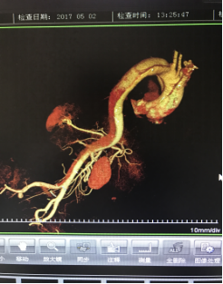 5月2號劉大伯照常早起干活,突然胸部劇烈疼痛,難以忍受,全身大汗,同時伴有右上肢發(fā)涼,他心想這次心絞痛比之前嚴(yán)重的多啊,趕緊叫上孩子到吉林國文醫(yī)院心血管內(nèi)科住院,患者長期高血壓病史,血壓一直控制不理想,大夫給他做了檢查,測左上肢血壓:82/45mmHg,右上肢血壓測不出,心率52次/分,右側(cè)肱動脈、尺動脈、橈動脈搏動消失,左側(cè)股動脈搏動較右側(cè)弱?!霸懔?,雙側(cè)血壓差別這么大,是不是主動脈夾層了?”,接診大夫趕緊找來李主任,李主任反復(fù)詢問患者病情,表情突然凝重起來,患者胸痛這么明顯,血壓低的厲害,主動脈夾層的可能性很大。二話不說,李主任立即聯(lián)系影像科的醫(yī)生準(zhǔn)備做主動脈CTA,移動患者做檢查的過程大夫們非常小心,嚴(yán)密監(jiān)測患者血壓變化情況。兩個小時后結(jié)果出來了,主動脈夾層從升主動脈一直撕裂到左側(cè)髂總動脈!??!