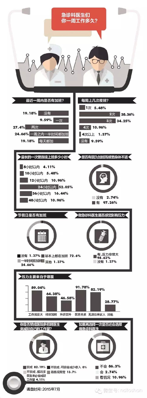 下午4點鐘,張大夫準時換好衣服,出現(xiàn)在了急診科的辦公室里。綠色工作服,外套白大褂,走起路來風一樣。從這個時間開始,他要像往常一樣值班到次日晨8點。中間留給他睡覺的時間可以數(shù)得出來的,最多有3個小時。