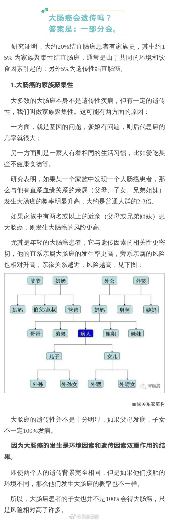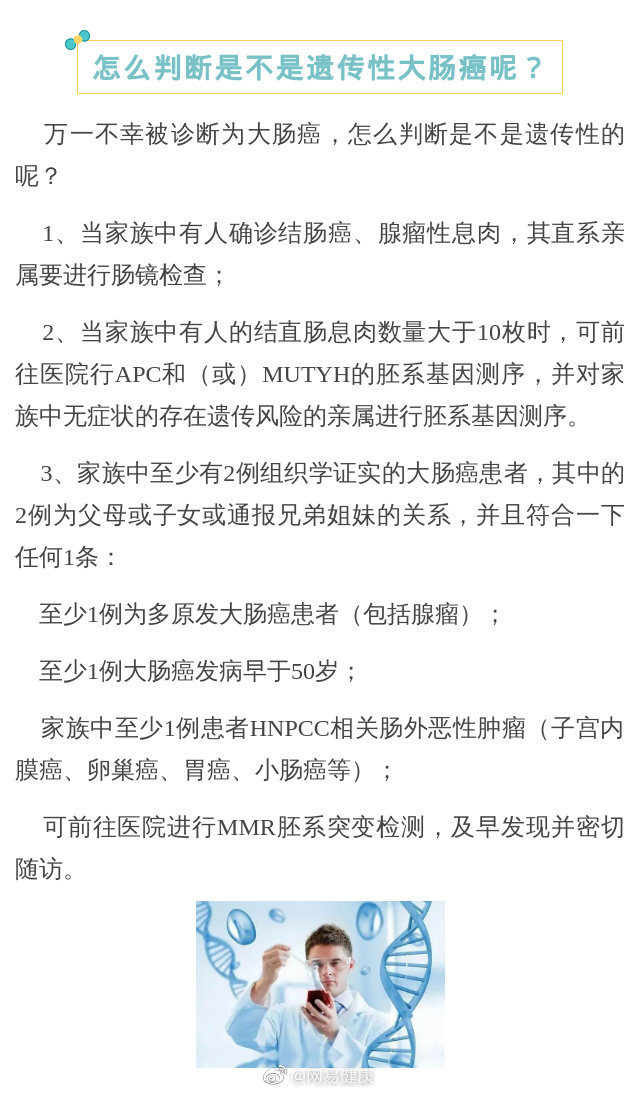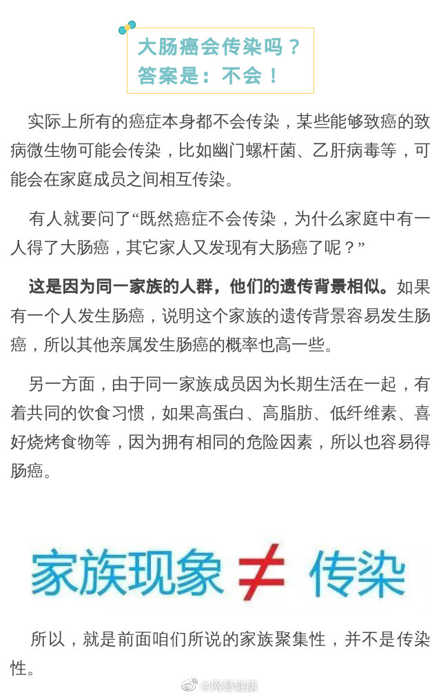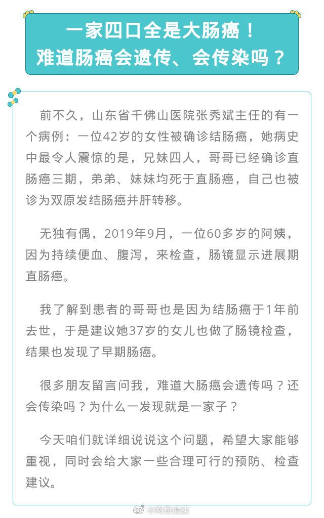 在很多病例中我們可以發(fā)現(xiàn),大腸癌經(jīng)常出現(xiàn)在同一家族。難道大腸癌會遺傳嗎?還會傳染嗎?為什么一發(fā)現(xiàn)就是一家子?
