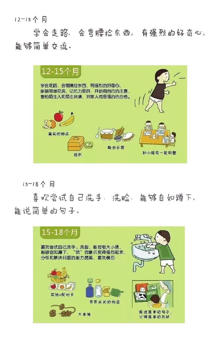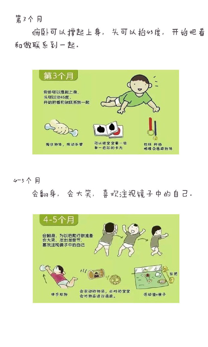 作為家長,從寶寶呱呱墜地起,我們就擔(dān)心,寶寶幾個月會翻身?幾個月走路?多大才會自己吃東西?真是一百二十個心都不夠用的。寶寶1-3歲的發(fā)育圖譜,供家長們參考。同時,每個寶寶都是獨一無二的,圖譜中是平均值,自己寶寶發(fā)育早點或者晚點,無需太過介意