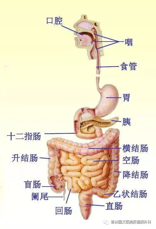 消化道分為上消化道和下消化道,其中上消化道包括口腔,食管,胃,下消化道包括大腸,小腸。