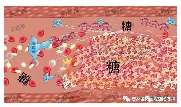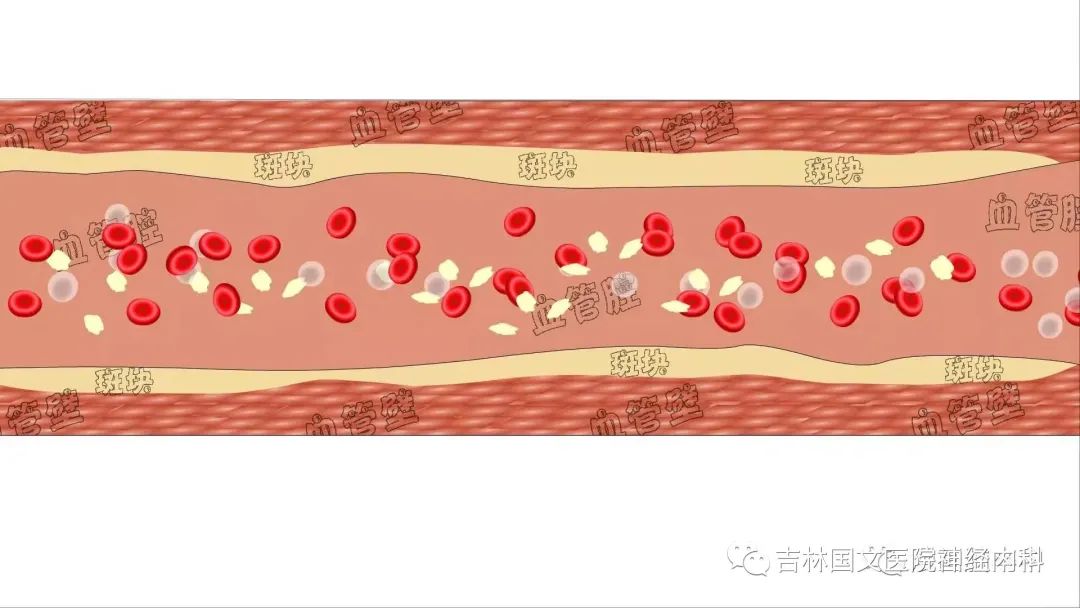 3.高血糖:糖尿病和動脈粥樣硬化的關系:血管壁破了之后,血糖高了,血小板開始特別“興奮”,來了特別多的血小板,粘附和聚集,形成了血栓。