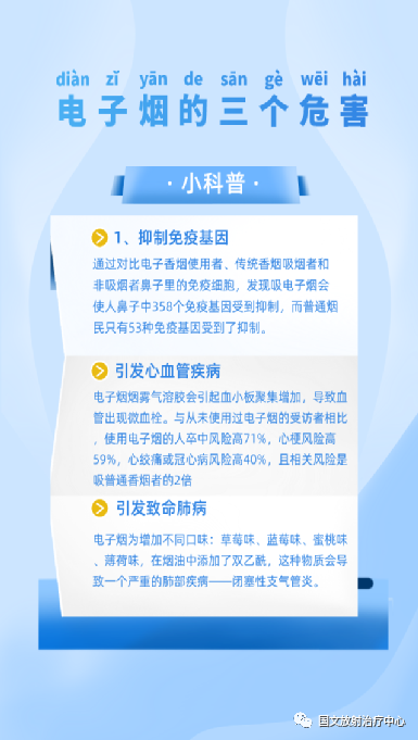 經(jīng)過多年的宣傳,“吸煙有害健康”的觀念已深入人心。但吸煙一旦上癮就難以戒除,在這個背景下,打著“戒煙神器”名義的電子煙誕生了。經(jīng)過產(chǎn)品的升級改良,在廠家強(qiáng)大的廣告宣傳攻勢下,第三代電子煙在全球量正以兩位數(shù)的增速擴(kuò)張,電子煙的危害也越來越多地被我們所認(rèn)識。