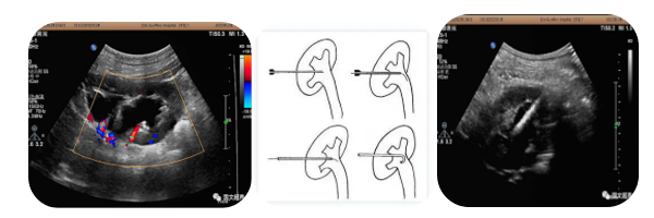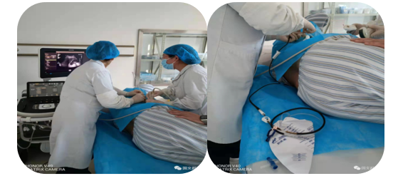 超聲實時引導(dǎo)下將引流管放置在因腫瘤、結(jié)石等壓迫、堵塞梗阻擴張的膽道、腎盂、膽囊、膀胱內(nèi)引流出潴留的膽汁、尿液,防止或緩解肝腎功能衰竭,進而減緩患者痛苦為臨床爭取治療機會。
