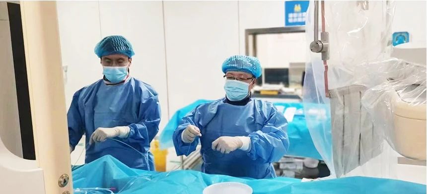 此時,李桂武主任帶領(lǐng)介入團隊立即上指引導管,通過此導絲,將帶有球囊擴張器的導管送到梗阻部位,然后氣囊充氣,通過擠壓斑塊和擴張動脈使梗阻解除,快速精準植入支架。隨著血管的開通,吳先生的血流慢慢恢復,胸痛癥狀得到明顯緩解,安返病房,經(jīng)過1周的精細治療,康復出院。