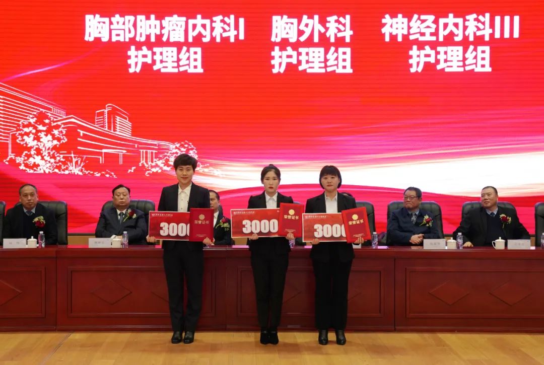 伴隨全場(chǎng)掌聲的再度響起,常務(wù)副院長(zhǎng)徐廣范致大會(huì)結(jié)束詞。她指出:今天的大會(huì)是一次承上啟下、奮發(fā)向上,開(kāi)拓進(jìn)取的大會(huì),全體職工要以先進(jìn)為榜樣,立足本職,愛(ài)崗敬業(yè),努力奮斗。山高水長(zhǎng),步履不停,雄關(guān)漫道,任重道遠(yuǎn)。新征程上,全院上下要緊緊圍繞呂國(guó)旗書(shū)記工作部署,堅(jiān)持做好團(tuán)隊(duì)建設(shè)、堅(jiān)持做好思想教育、堅(jiān)持深化知識(shí)培訓(xùn)、堅(jiān)持強(qiáng)化服務(wù)理念、堅(jiān)持創(chuàng)新工作機(jī)制,堅(jiān)持提高??扑浇ㄔO(shè),在鞏固已有成果的前提下,進(jìn)一步夯實(shí)專科業(yè)務(wù)基礎(chǔ),堅(jiān)定不移地把醫(yī)院高質(zhì)量發(fā)展的目標(biāo)任務(wù)落到實(shí)處,乘勢(shì)而上,再創(chuàng)輝煌!朝著建設(shè)百年國(guó)文奮斗目標(biāo)賡續(xù)前行。