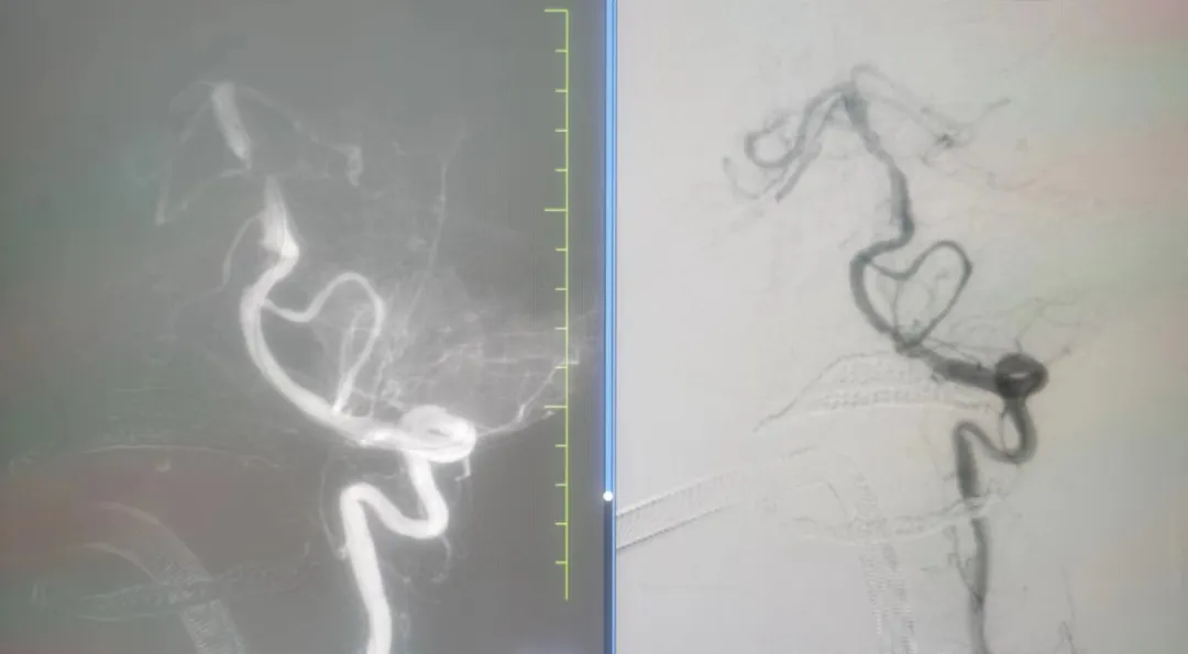 70歲的劉阿姨(化名)家住伊通縣,三天前劉阿姨在家中突發(fā)右側(cè)肢體活動不靈,言語笨拙,被家人直接送往我院。入院后,神經(jīng)介入科丁金明主任、朱洪波副主任第一時(shí)間查看患者并為其安排完善檢查,經(jīng)頭部核磁檢查提示:基底動脈狹窄程度竟達(dá)到了95%,該血管一旦發(fā)生急性閉塞,將危及患者生命,情況十分危急,需要立即手術(shù)。要知道基底動脈重度狹窄為急性腦缺血的根本原因,狹窄處隨時(shí)可能因?yàn)樾庐a(chǎn)生的血栓而導(dǎo)致血管急性閉塞,一旦基底動脈完全閉塞,則會危及患者生命,具有高致死率及高致殘率。目前最有效的治療方式是血管內(nèi)介入治療即基底動脈狹窄球囊擴(kuò)張術(shù)。在與患者家屬充分溝通并征得同意后,醫(yī)護(hù)人員迅速將劉阿姨送入導(dǎo)管室,在丁金明主任帶領(lǐng)下神經(jīng)介入科團(tuán)隊(duì)為患者股動脈行穿刺,通過DSA(腦血管造影)精準(zhǔn)鎖定到病變血管基底動脈狹窄處,以球囊完成擴(kuò)張,狹窄處血流明顯改善。術(shù)后造影顯示狹窄段血管擴(kuò)張滿意,患者狀態(tài)良好,言語笨拙和右側(cè)肢體活動不利癥狀得到改善,降低了患者腦血管病復(fù)發(fā)的幾率,有效的改善患者預(yù)后!目前,國文醫(yī)院神經(jīng)介入科在該領(lǐng)域的治療能力已達(dá)省內(nèi)先進(jìn)水平。國文醫(yī)院神經(jīng)介入科長期開展全腦血管造影、腦血管支架植入術(shù)等神經(jīng)介入治療,為廣大腦血管病患者開辟了新的檢查治療途徑,國文始終秉承“快速、精準(zhǔn)、微創(chuàng)”的救治理念,使省內(nèi)腦血管病患者得到最及時(shí)有效的診治。