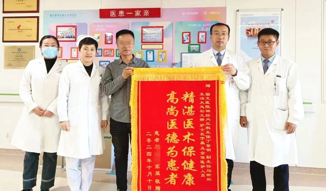 近日,終于擺脫頑固性長期失眠的劉阿姨和其家屬,將一面鮮紅的錦旗和一封充滿情感地感謝信送到神經(jīng)內(nèi)科三療區(qū)醫(yī)護(hù)人員手中,以表達(dá)對神經(jīng)內(nèi)科三療區(qū)丁金明主任、馬昕彤副主任以及主治醫(yī)師的真摯謝意。劉阿姨表示:“現(xiàn)在每晚能夠安然入睡,整個(gè)人都神清氣爽!國文醫(yī)院的大夫和護(hù)士真是好,服務(wù)很貼心?!?/p>