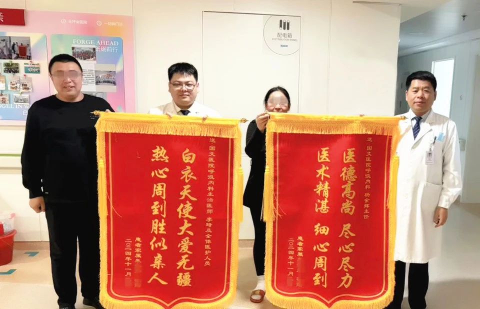 經(jīng)過呼吸內(nèi)科醫(yī)護人員近半個月的精心治療,朱大叔身體全面康復(fù),迎來出院的日子,為表感謝朱大叔一家特別送上兩面錦旗,分別贈予楊主任和主治醫(yī)師李醫(yī)生,以表達對國文醫(yī)院呼吸內(nèi)科團隊的深深謝意。