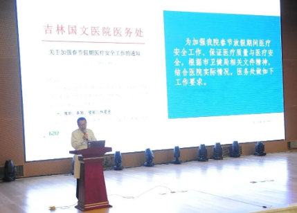 院領導強調,安全無小事,防范無假期,各科室負責人要切實落實責任,確保安全生產工作與醫(yī)療工作同部署、同檢查、同落實。要牢固樹立“紅線”意識和“底線”思維,堅決摒棄麻痹思想和僥幸心理,真正把安全生產工作放在心上、抓在手上、落實到行動上,切實做好春節(jié)期間安全生產工作。