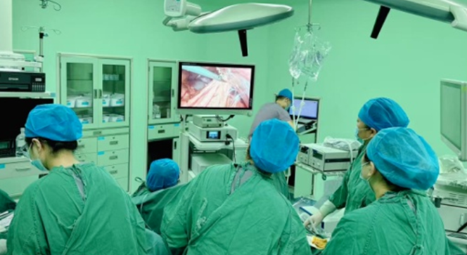 治療方案確定后,多學(xué)科團(tuán)隊(duì)迅速聯(lián)動、緊密配合。介入科團(tuán)隊(duì)在局麻下為魏女士實(shí)施子宮動脈栓塞術(shù),術(shù)前已提前聯(lián)系血庫備好血液,做好萬全準(zhǔn)備,婦科團(tuán)隊(duì)在靜吸復(fù)合全麻下,開展腹腔鏡監(jiān)視下宮腔鏡子宮瘢痕妊娠病灶清除術(shù)。整個手術(shù)過程緊張有序、精準(zhǔn)高效,最終順利完成。