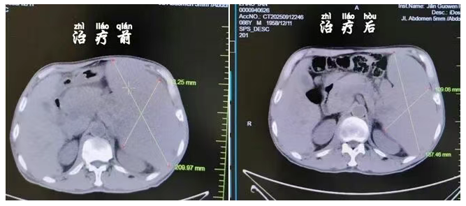 接下來的治療日子里,趙先生嚴(yán)格遵照醫(yī)囑,按時(shí)接受化療?;煹倪^程并不輕松,但每次想到醫(yī)生的鼓勵(lì)和家人的陪伴,他都告訴自己要堅(jiān)持下來,而病情的好轉(zhuǎn),也在一點(diǎn)點(diǎn)給予他信心:治療半個(gè)月后,困擾已久的腹脹感明顯減輕,一個(gè)療程結(jié)束,乏力癥狀逐漸消失,他終于能自己下樓慢慢散步,最新的腹部 CT 顯示,之前腫大的脾臟已明顯縮小,血小板數(shù)量也回升到了接近正常的水平。