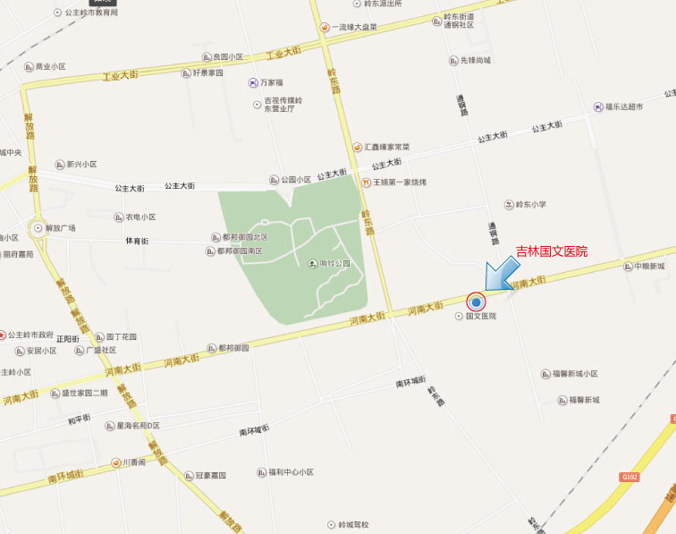 7、舊102線四合屯方向:由舊102線上東立交橋,進(jìn)入嶺東路,依次通過工業(yè)大路路口,公主東大街路口,到達(dá)國(guó)文大街路口,左轉(zhuǎn)延國(guó)文大街東行100米,在國(guó)文大街南側(cè)(右手方向)即是。