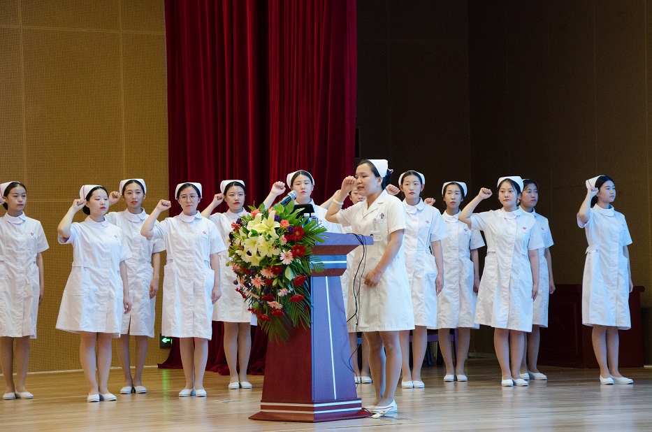 護士長李瑞華帶領護士宣讀南丁格爾誓言