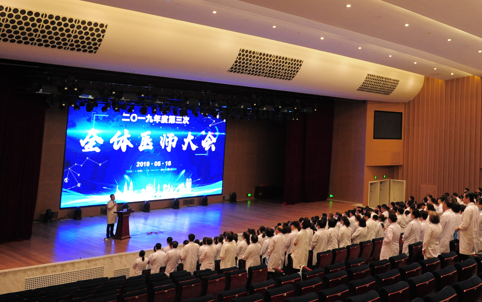 為強化醫(yī)院醫(yī)療隊伍建設(shè)、推廣新技術(shù)項目應(yīng)用、總結(jié)近期醫(yī)療質(zhì)量與安全管理重點工作,2019年5月16日下午,吉林國文醫(yī)院2019年第三次全體醫(yī)師大會在醫(yī)院學(xué)術(shù)報告廳順利召開。醫(yī)院領(lǐng)導(dǎo)班子及全院各臨床醫(yī)技科主任、醫(yī)(技)師共500余人參會。本次醫(yī)師大會由醫(yī)務(wù)處處長劉寶安主持。
