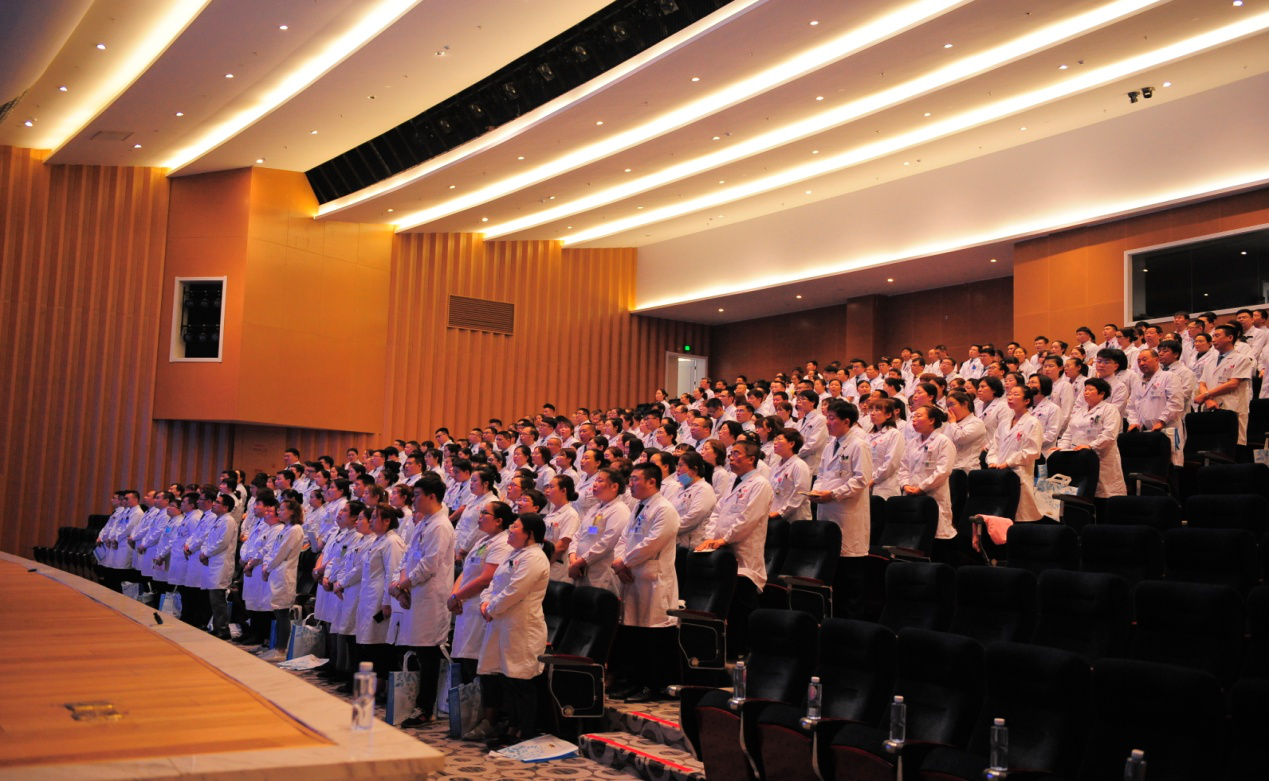 按照會議議程,首先全院醫(yī)生起立背誦《大醫(yī)精誠》,全體醫(yī)師起立背誦時聲音洪亮、飽富熱情,彰顯了醫(yī)師職業(yè)的神圣感和使命感。