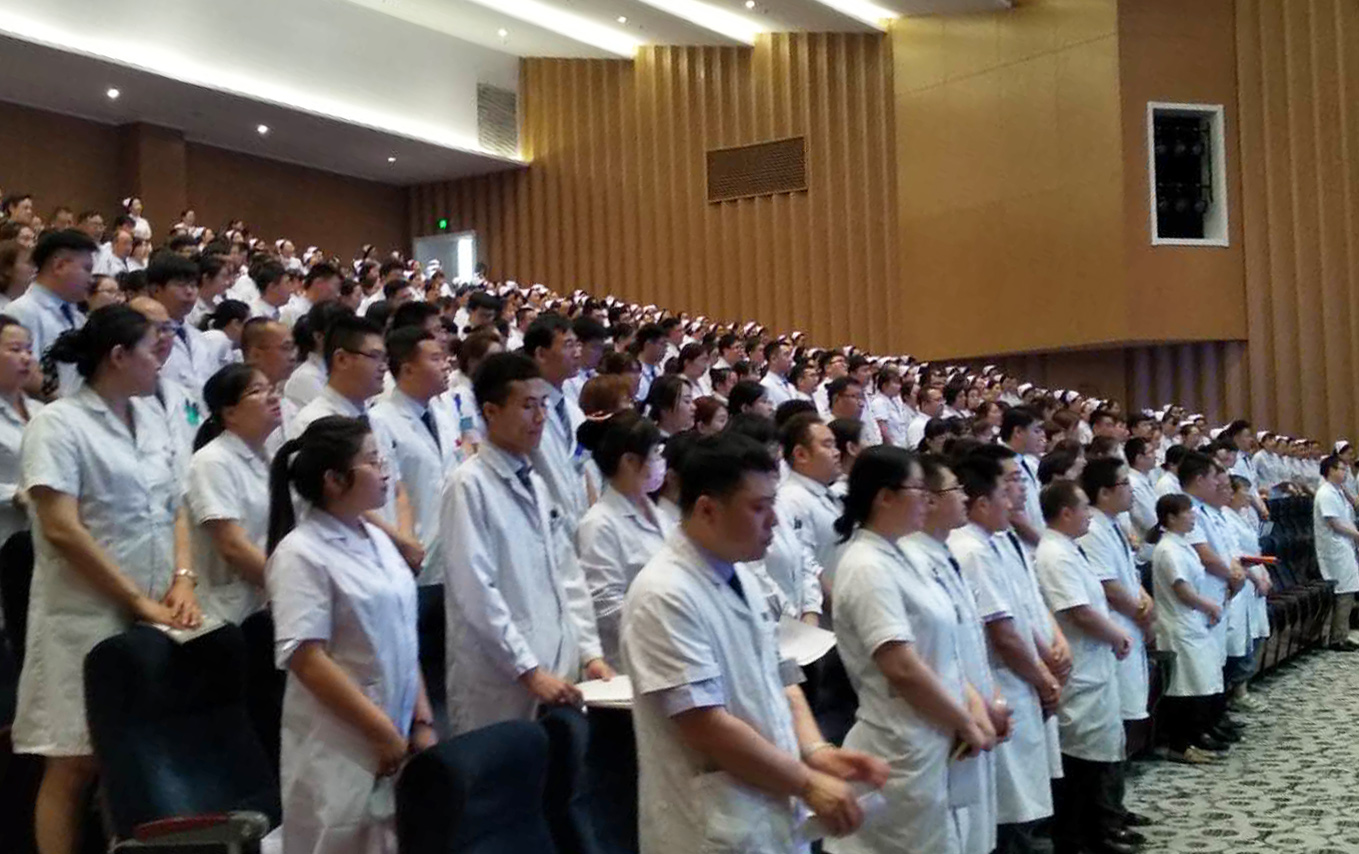 按照會(huì)議議程,首先全體參會(huì)人員起立背誦《大醫(yī)精誠(chéng)》,聲音洪亮、飽富熱情,彰顯了醫(yī)師職業(yè)的神圣感和使命感。